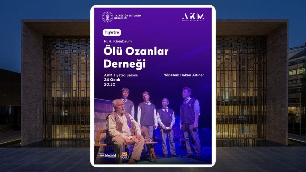 Ergenlik çağındaki birkaç gencin disiplinli bir yatılı okulda geçen hikâyesini anlatan Ölü Ozanlar Derneği, Atatürk Kültür Merkezi Tiyatro Salonu’nda seyirciyle buluşuyor. Oyun, bireyin kendini ifade etme çabasını, toplumsal baskılarla olan mücadelesini ve özgürlük arayışını ele alıyor. Okula yeni atanan öğretmen John Keating’in gençlere yeni bakış açıları kazandırmaya çalıştığı hikâye, izleyicilere ilham veren bir deneyim sunuyor.